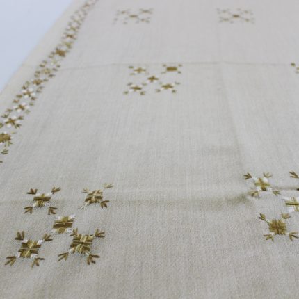 ₨ 12,000.00₨ 9,000.00- Full embroidered traditional Swati shawl, Golden and White floral embroidery, on Camel color base.