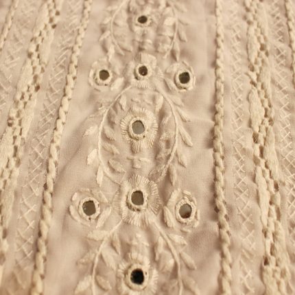 Taar’kashi, White Embroidery & Mirror Work on White Self-Print Georgette.