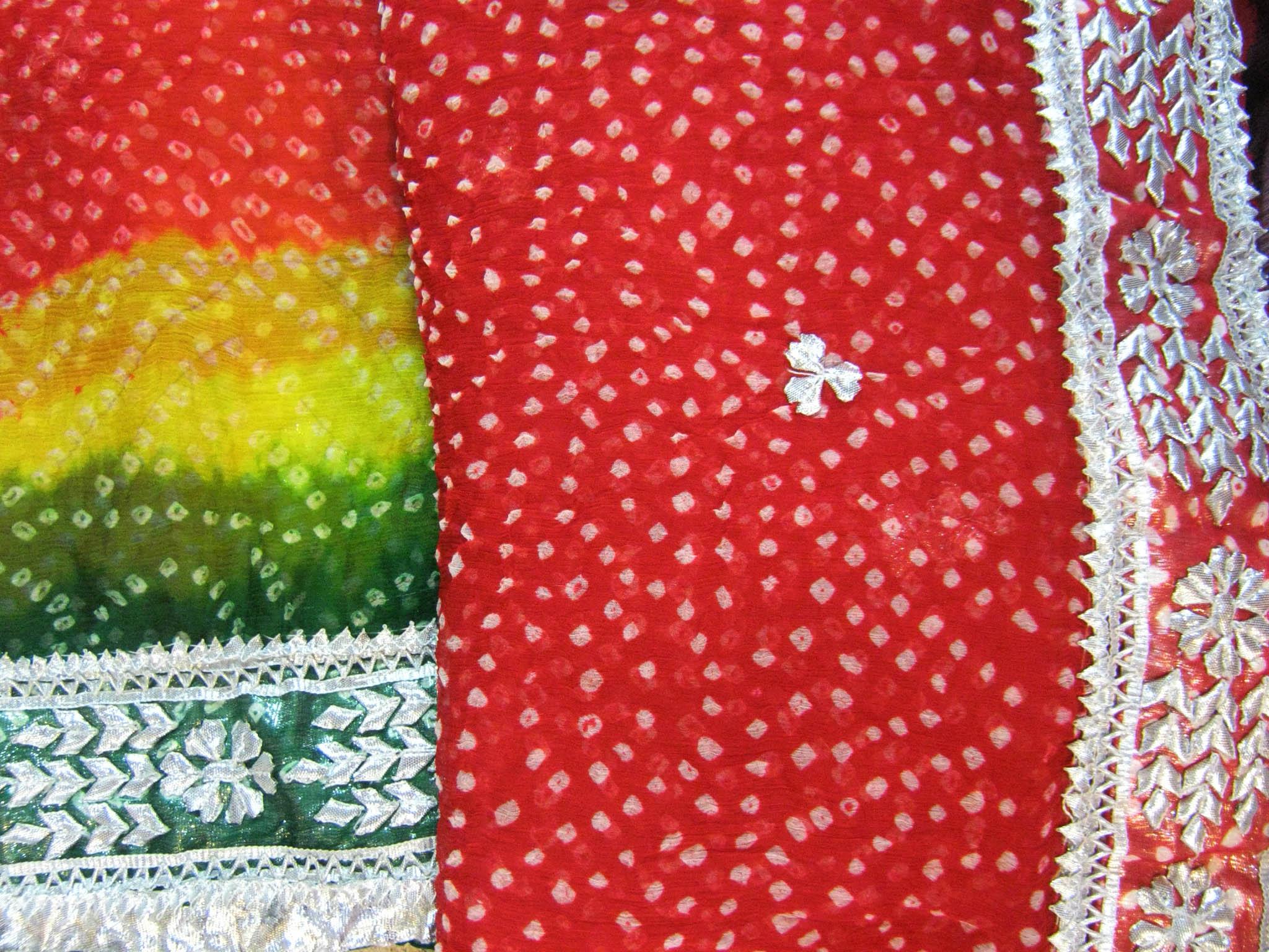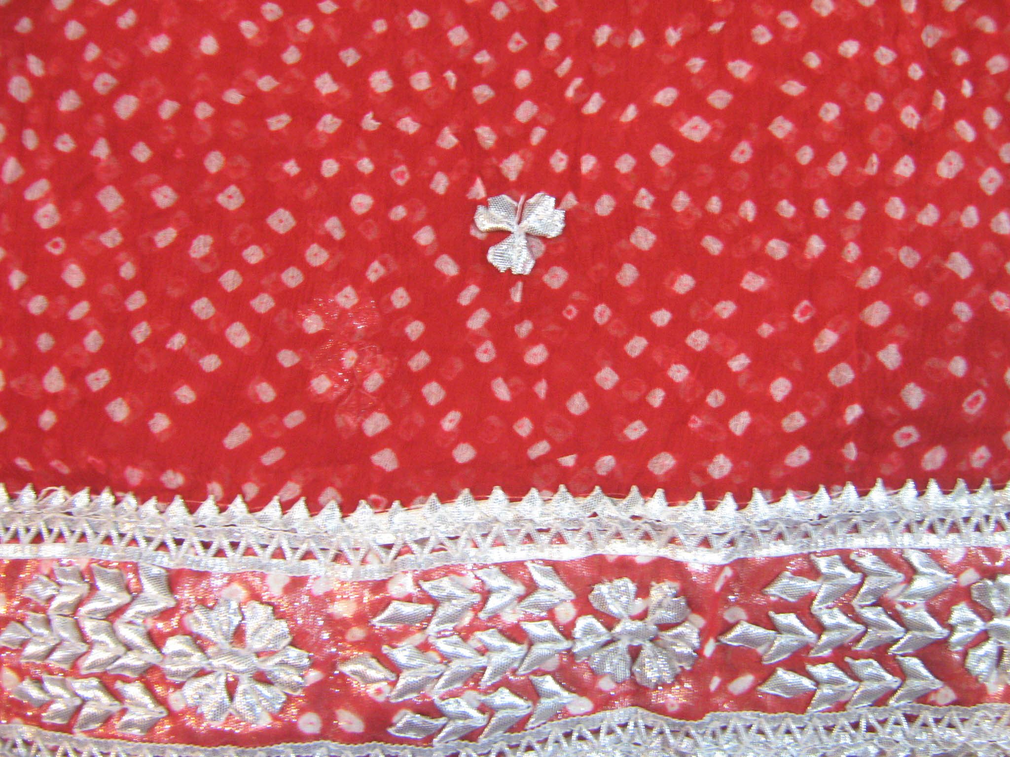 - Pure Chiffon Vibrant Chunri Suit with Traditional Gotta Work