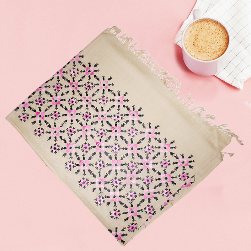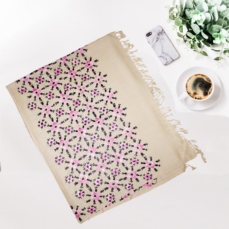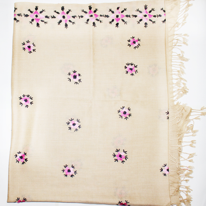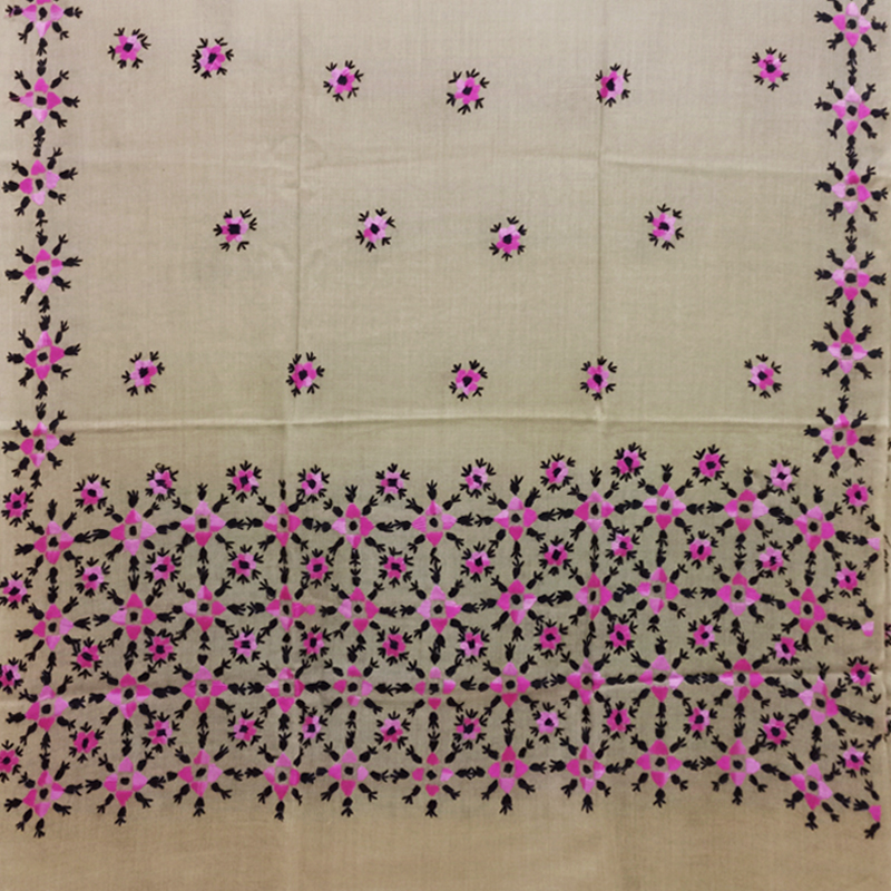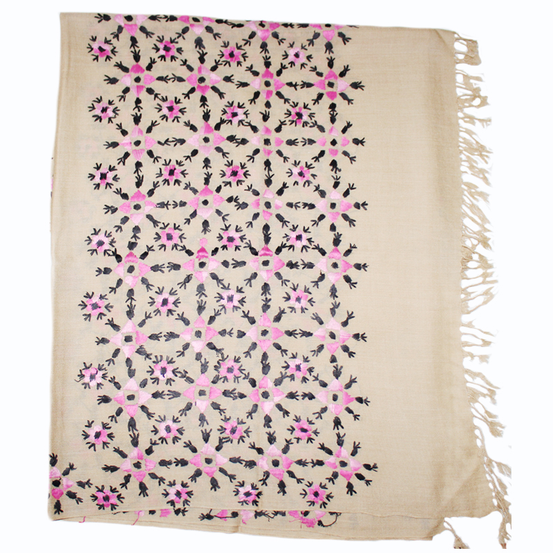- Full embroidered traditional Swati shawl, Pink floral embroidery with tinge of black, on Skin color base.